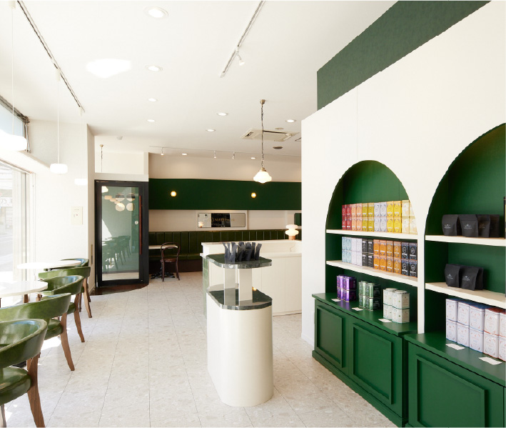 グリーンカラーで統一された店内は、ゆったりした時間を過ごしたい時から、お買い物の途中の休憩、ママ友とのランチ会、ビジネスの打合せなど、幅広い用途でご利用いただけます。