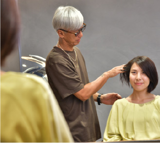 一人ひとりの髪の特徴を瞬時に理解し、素材を見事にコントロールしながら、理想をすばやく実現。大人の髪ならではのうねりやクセもデザインに変える高度なカット技術で、パーマをかけなくてもまとまり、ふんわりとボリューム感のあるスタイルに。薄毛や白髪のコンプレックスはカバーしながら、その人らしい魅力を最大限に引き出します。